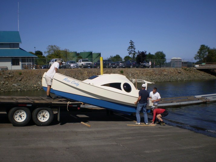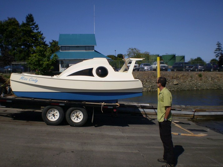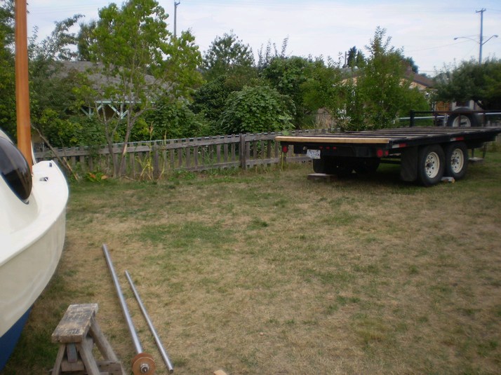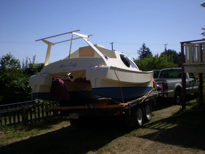 On the trailer ready to head out. She cleared the edge of the sundeck by 1/4".
