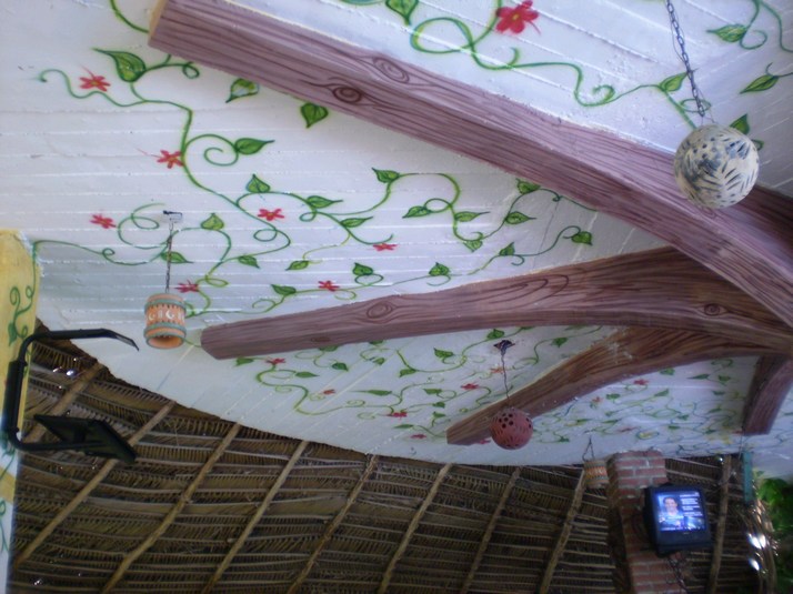 Ray has plans to pick up his laundry and hit the pool at the Sand Hotel Sandbar. I pick up my laundry bag and head ashore with him on a panga water taxi. 25 pesos return per person. Then over to the Sandbar for a couple of cold beers and a leisurely swim in the pool. That takes up all the afternoon. We head over to a local eatery to watch the sunset and have dinner with the Canadian girls that have been keeping Ray up till all hours. Nice little dinner then off to Lucy's Paradise Bar... I briefly met Lucy on the way to the laundry earlier. She and her business partner 'Cabana Boy' chat with us a bit. Some how mention of the big tin cat on Gabriola comes out and Cabana Boy is suddenly all excited. Seems 9 years ago he was the crane operator who put the mast up on Osram VII.