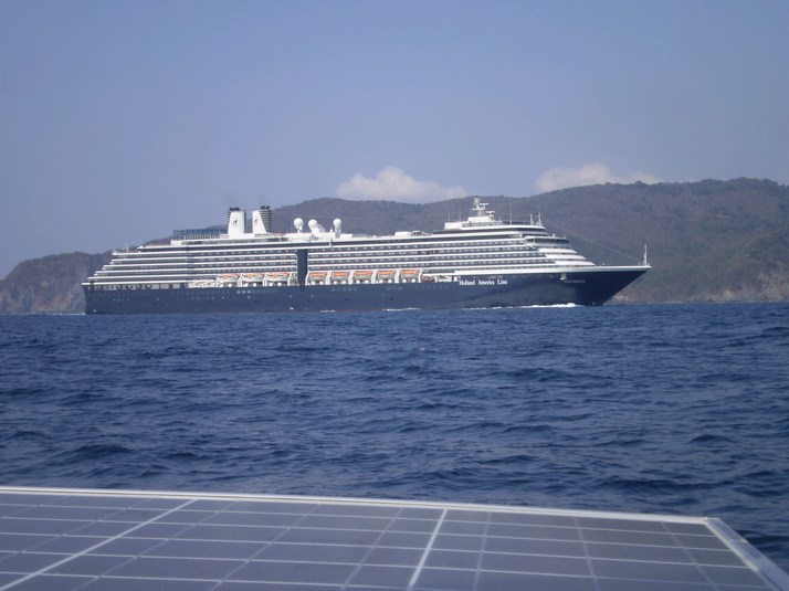 The 'Oosterdam' came over the horizon about ten minutes later and we tacked to stay clear. Our little radio setup with an antenna 4' off the water was able to bridge their communication problem.