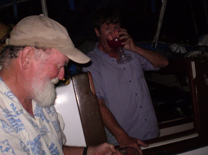 Onboard Raven, Ray on left Scott with a nice drink.