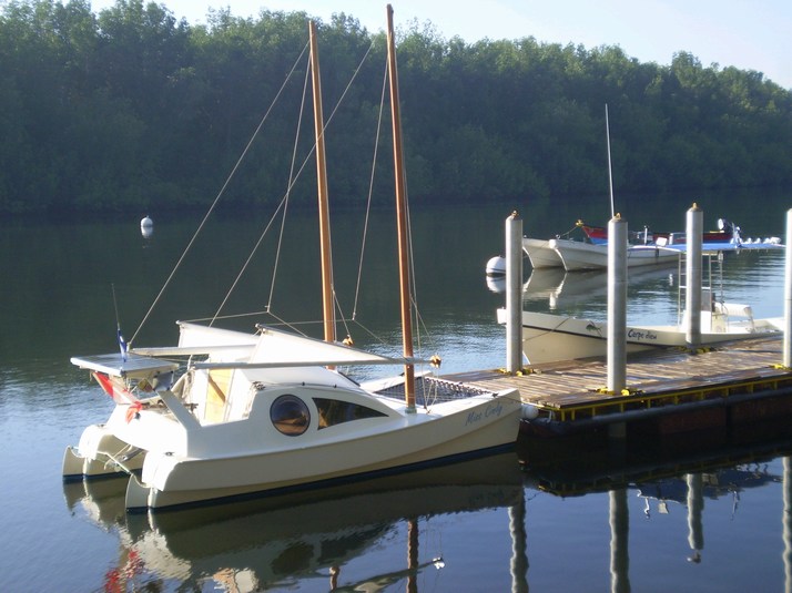 It was so windy it was hard to pull 'Miss Cindy' upwind in her slip. I have to wait for customs et all and they are due at 1400, but I am free to use the pool, showers, bar etc. I meet the manager ( name lost in antiquity ) and he asks me if I am on 'Gigi'. This catches me off guard as my sisters name is Gigi ( now your mentioned too Gigi :). He says the little catamaran, 'Miss Cindy' yes. He was on the phone when we blew on in and he told his friend that a 12' catamaran just came in! I will later meet the person on the other end of the phone in Granada. Turns out there is a sailboat in named 'Gigi'. The couple on board are a little bit outside the cruisers mainstream too, see: SV Gigi