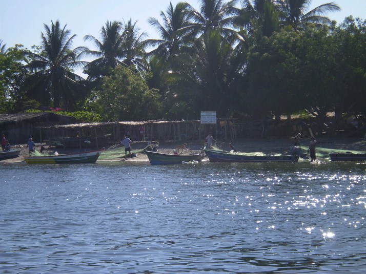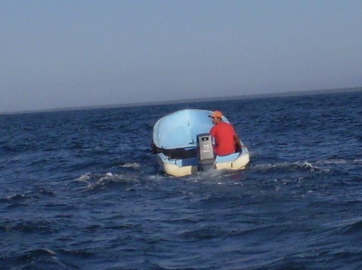 It is pretty comfy here with waves about 1 ft and hard wind gusts. About 1700 a panga comes by with the bad news about 'tubos' and we re-anchor out in 2' waves and harder wind gusts. I will set the alarm for 2 hours shifts and check the anchor. I am thinking maybe Puesta del Sol marina 23 miles South is looking pretty good right now for a couple of days. That would also let me get a couple of 4.5 lb bruce type anchors and some chain and line on the way for pickup in Managua.