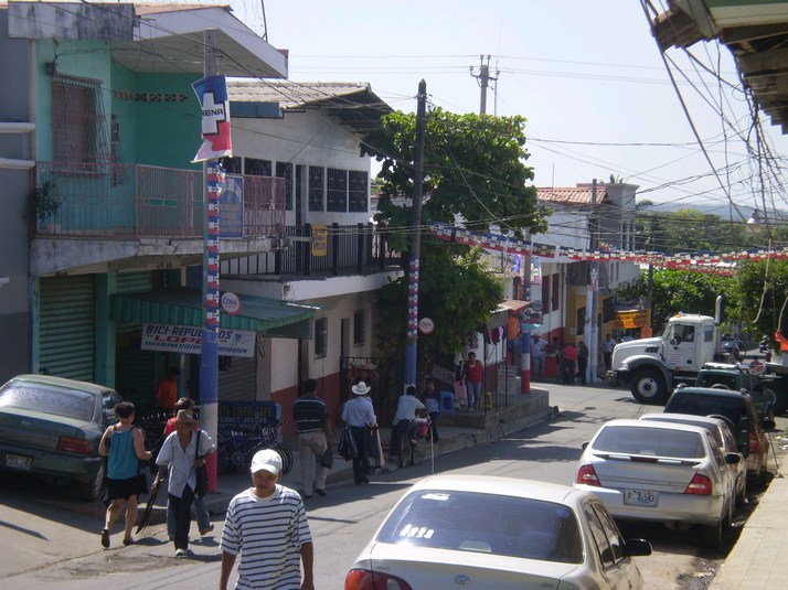 While I wait for Nelson another taxi drivers offers me a lift and I mention I am waiting. He says, too bad I am first you have to go with me. I take a walk to the head of the pier and wait for Nelson. About 20 minutes later the first guys shows up and says he has talked to Nelson on the phone and he won't be coming to get me. I get in. This driver is a expat from Chile and has Chile and El Salvador flags stuck to the passenger side of the windshield blocking his view and mine.