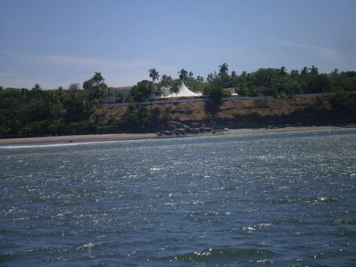 1730 San Juan del Sur. The green buoy was missing from the big reef at the west of the entrance but we had no trouble seeing the reef with it's big swells bursting and their spray blowing back to sea. There is sand flying everywhere and I can feel the grit in my teeth. We have reached our Southern Pacific terminus. I can taste it.