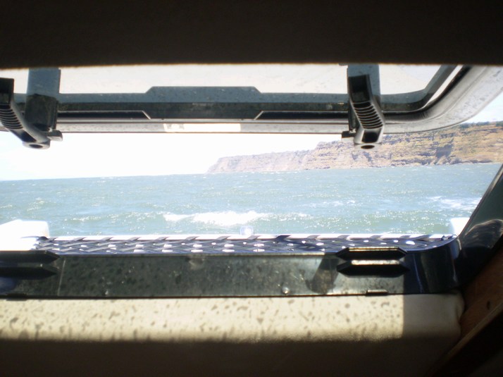 At 1430 the wind is down a bit with some strong gusts. We head out staying very close to shore when we can.