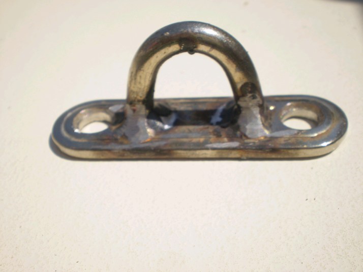 Manage to find a welding place, nothing like TIG in town but Salvador will stick weld Stainless. I explain what I want and Salvador goes to it on the broken one. If that looks good I will give him the spare to weld as well. The shop is primitive. All the tack welds are without eye protection, but he does find a piece of dark glass for the big welds. He chips the weld with a old screw driver. They look pretty good and I ask him to grind the welds where the bolt heads will go and also to drill the mounting holes out to 1/4". All of this takes about 1/2 an hour. I ask him how much. US$1.