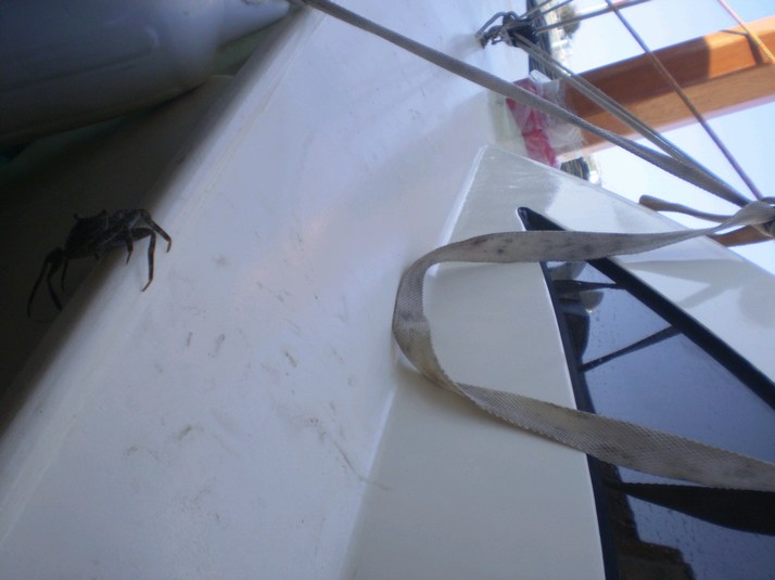 The quay here has a bit of surge. I have long lines fore and aft with chafing gear where they cross the concrete of the pier. It is a different motion than at sea. The strength of the surge comes and goes. Taking the other mast out here even with the surge will be easier than at sea. I will get someone to lend a hand so as not to loose the special coin overboard. I don't see any rats but there are lots of land crabs and at least one tries to board 'Miss Cindy'