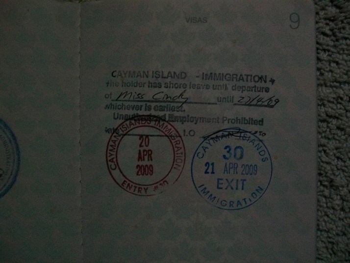 My passport stamp says I am 'on shore leave' until 'Miss Cindy' sails. I really feel like a sailor now.