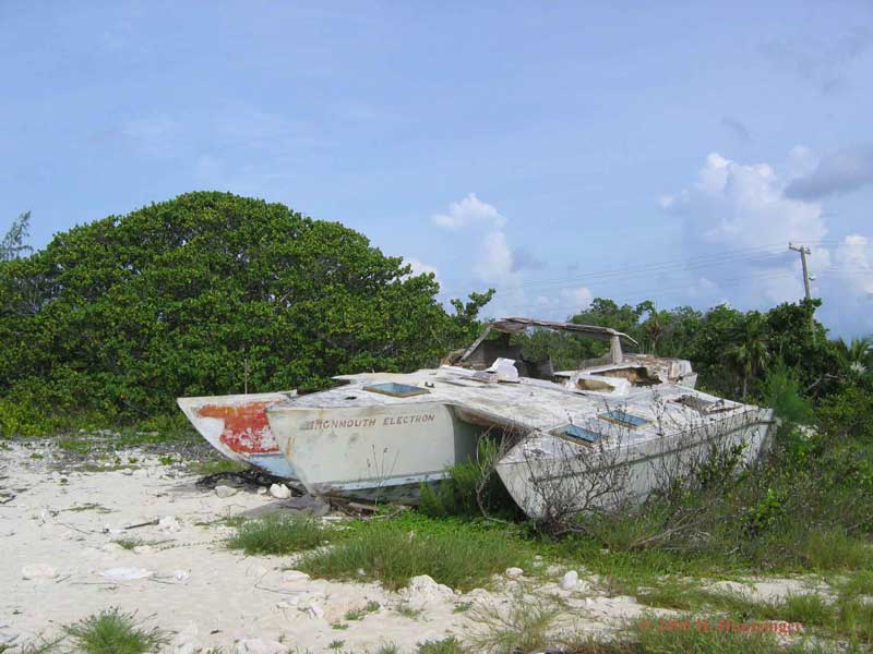 Donald Crowhurst's boat. Falling apart on the beach. This photo was taken about 4 years ago. I have some sand from its home port aboard, they will be together soon again. Within a couple of months of my arrival at Cayman Brac it will have been 40 years since Donald was last aboard. I read the story of his voyage in the early 70's and the story of his sailing efforts and his efforts to hide in the Atlantic and fake his round the world voyage. He discovered a mathematical answer to the meaning of life then wrote in his log it was time to end the game and after 243 days alone he stepped off his boat into the Sargasso Sea.