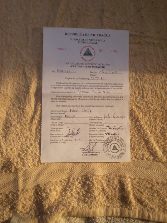 0800 We get our passport exit stamp and our Zarpe for El Limon Costa Rica.
