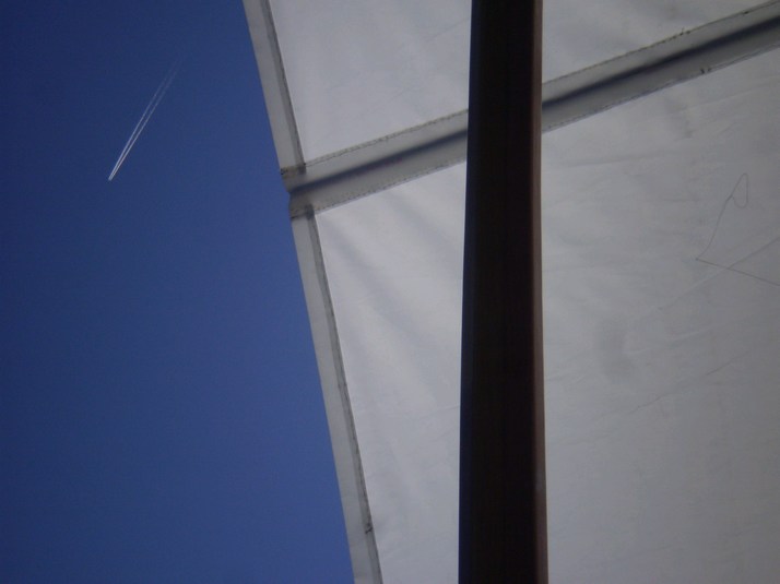 Depart around 0400 and by 0700 there is lots of wind blowing off the shore and we are close reaching. I decide to carry full sail. The port gaff breaks.