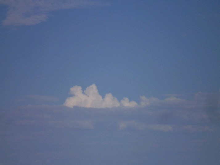 This cloud reminded me of a chicken couple, his wing around her, watching TV.
