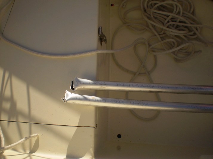 It was the leeward one so was not partially supported by the mast at the time. Carry on with stb sail. By 1100 I have hand sawed a bunch of wood and the broken pipe ends and fished it. Another thing to take care of in Santa Rosalia.