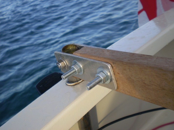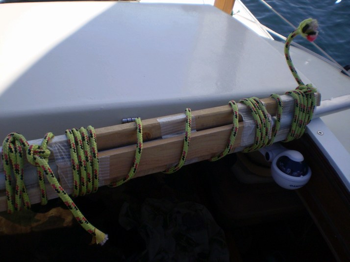 Also repaired the tiller head replacing the 5/32" machine screws which both sheared with some galvanized 1/4" bolts. Seems happy now. Have had to settle for a boom and a spare made from window sash aluminum. Tried to have some made up from wood but the carpenter was really busy and it never happened.