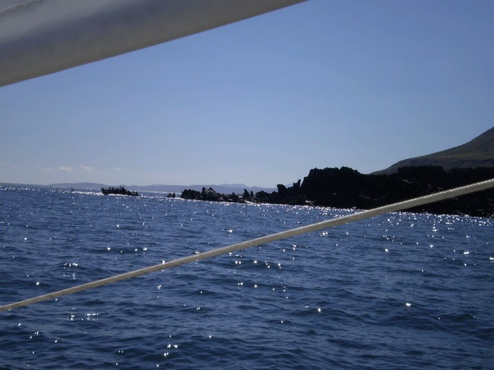 The wind is currently alternating from 25kt SE to 25kt W. It seems to switch every 15 minutes. This finally ends as we reach across to Santa Rosalia harbour at a steady 6-7kt. But the wind turns steady SE ( on the nose ) with lumpy seas and a 10kt breeze. We tack for two hours to cover the last couple of miles and head in between the breakwaters wing and wing around 1600. Fellow waving frantically over by the Port Capitan's office but I cannot make out what he is saying, but he is waving me over. Turns out he is a marina shill, but I tie up anyway. Showers, laundry, fresh grub, things to fix.