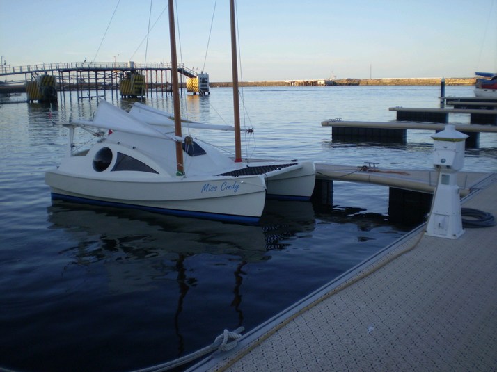 At 0300 we have advanced 24 nautical miles in the last 24 hours. We are into the big bay with the next point Cabo Vigrenes but it is a long way off. In the morning a quick breeze comes up on the beam. 25kt. I keep full sail on and we romp along. After an hour or so the seas have built to 3-5' and I have reefed down to 2 panels per sail. We are still moving fast and getting some heavy reaching experience. No green water on deck but the lower decks are washed by spray and the cabin gets it share whenever waves break just as they reach the windward hull. No water gets past the cabin hatch seal however. No pounding of the bridgedeck except when the bigger waves break right under it, but it is pretty soft. The main other feature is the noise, wave slapping, wind howling, wake roaring. I cannot hear the VHF at full volume.