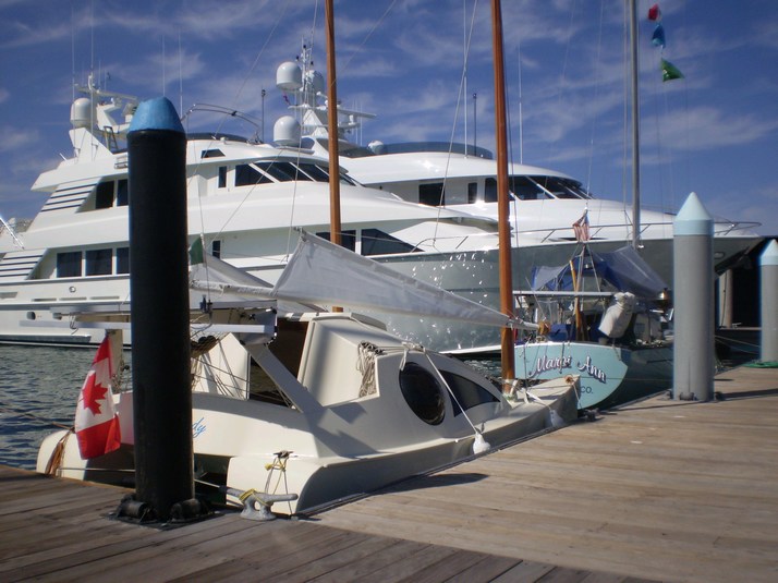We were also next to a couple of big power boats, one around 110 ft and the brand new 157 ft 'Slojo' launched in September just like 'Miss Cindy' that arrived a day after us. She is an American boat but flies a flag of convenience. She has a crew of 10 that rotates with another crew of 10 every 3 months.