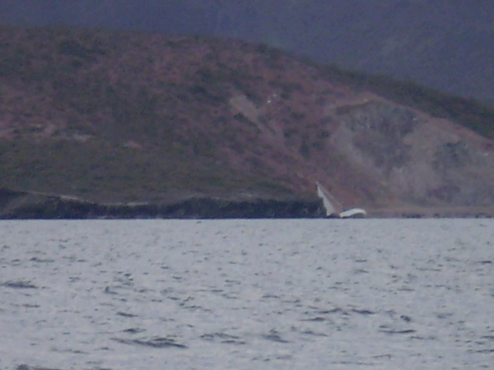 Headed out past the tuna king and sailed till the wind was gone which got me around the peninsula and half way down the next channel. Along the coast we sailed past this unfortunate boat. No one in sight and no response on the radio.