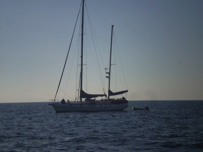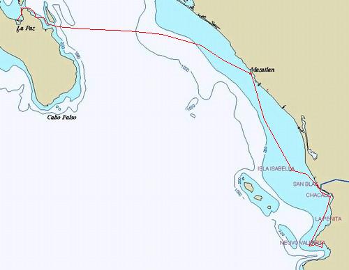 Set sail for Isla Isabella about 90 miles South with a 25% displacement overload. Moderate conditions and the boat still performing fairly well but some significant underbridge slap and certainly not a load the designer would support for more serious sea conditions. Sailed all day and spoke with 'Hipnautical' a Morgan 51 a few miles astern of us a dusk. Let them know our port side running light was dead. Hardly any systems on this boat but still stuff to fix. 'Hipnautical' is headed Isabella as well. Sailed thru the night and all next day and got in on the new motor with a few miles of fuel left.
