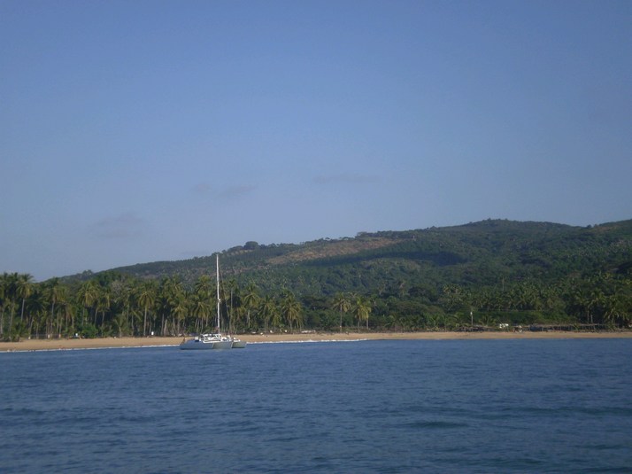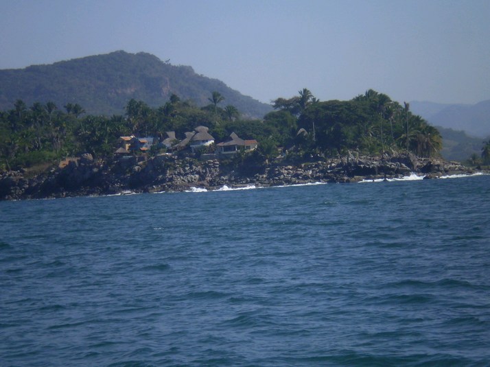 Chacala is a quiet fishing village with a couple of palapas on shore and a nice coconut grove. Lots of rocks off the point on the way in.