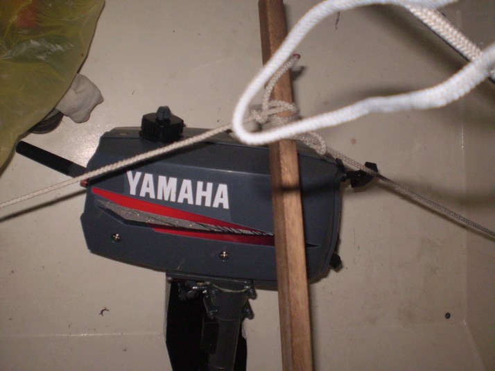 Once again the quest for booms and a small gas motor begins. I have crew coming in about 10 days from now and plenty of time to look into these. I get a Yamaha 2 hp 2 cycle job from the local dealer for about US$800 and it actually fits the new mount. I spend a few hours buzzing around the marina breaking it in for the most part.