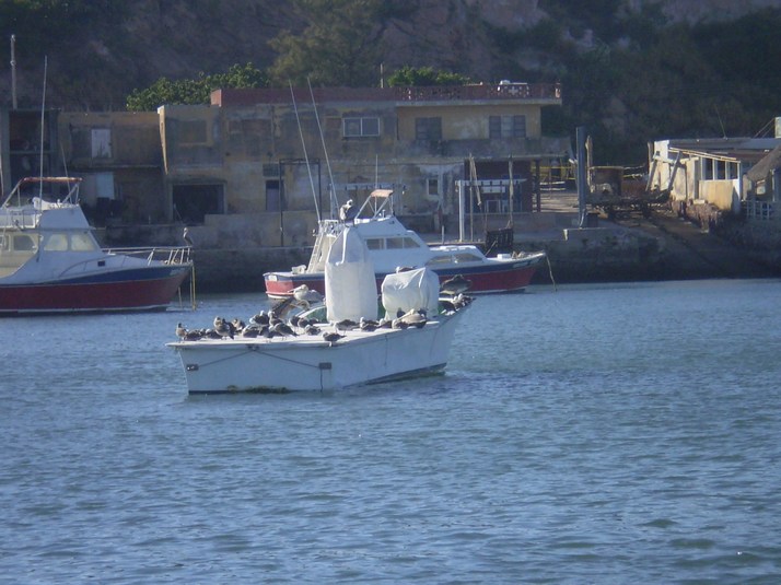 This one boat in the bay has all the birds on it. None of the other boats have any. Must be because it has covers on everything and the birds are considerate.