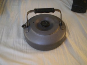 Nice primus hard anodized aluminium kettle. Two cups and does not drip when pouring